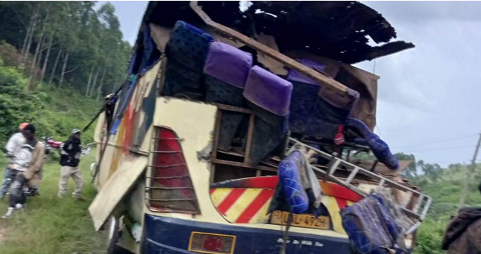 Police say the truck, travelling from Masaka towards Mbarara, rammed into the rear of the bus, triggering a violent collision that caused both vehicles to roll several times.