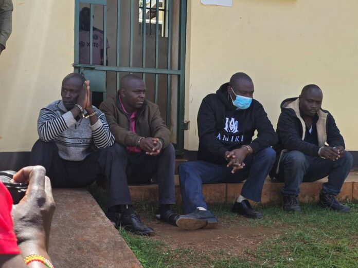 The suspects are identified as Bob Cherop (Acting Municipal Engineer), Alex Cherotich (Assistant Engineering Officer), Silver Atebeni Chekwurui (Assistant Engineering Officer), and Patrick Kusuro (Roads Inspector).