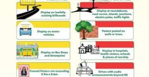 However, these materials are strongly prohibited on trees, churches, schools, hospitals, electricity poles, roundabouts, and moving vehicles near sensitive areas like schools and hospitals.