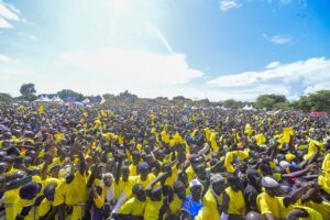 Crowds of NRM supporters attending President Museveni’s rally at Celecelea Stadium, Moyo Town, on 17th October 2025.