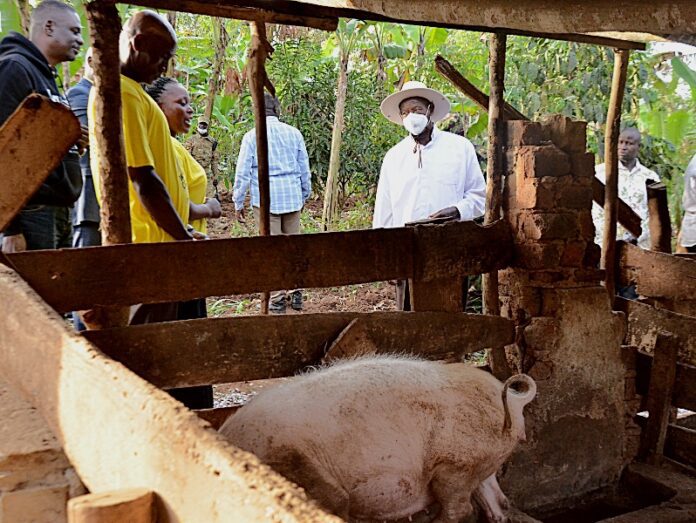President Museveni after touring Nampa Harriet’s piggery farm that she established with funding from PDM.Photo by Ronald Odongo
