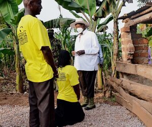 President Museveni with Nampa Harriet, a PDM beneficiary in Mukono.Photo by Ronald Odongo