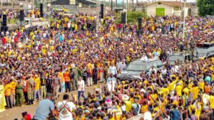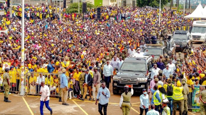 A huge crowd that received and attended Museveni’s rally at Namboole in Kampala on Sunday.