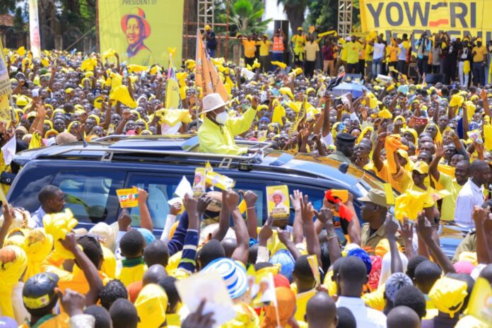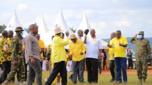From Mbale, the NRM presidential flag bearer climbed into the tough terrain of Sebei sub region from Bukwo District, where supporters lined the steep hillsides, draped in yellow regalia, waiting to welcome him.