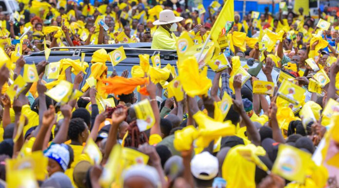 The rally drew senior NRM leaders, local officials and thousands of supporters as Museveni continued his campaign tour of Greater Masaka ahead of the 2026 general elections.