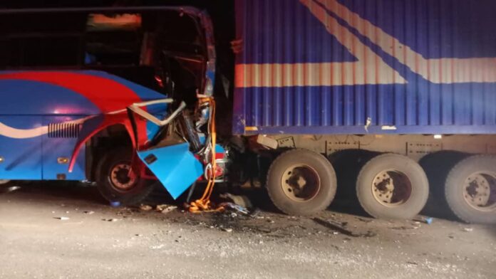 The bus, which was carrying 72 passengers, crashed into a stationary trailer before veering off the road and coming to a stop in Nakasongola District.