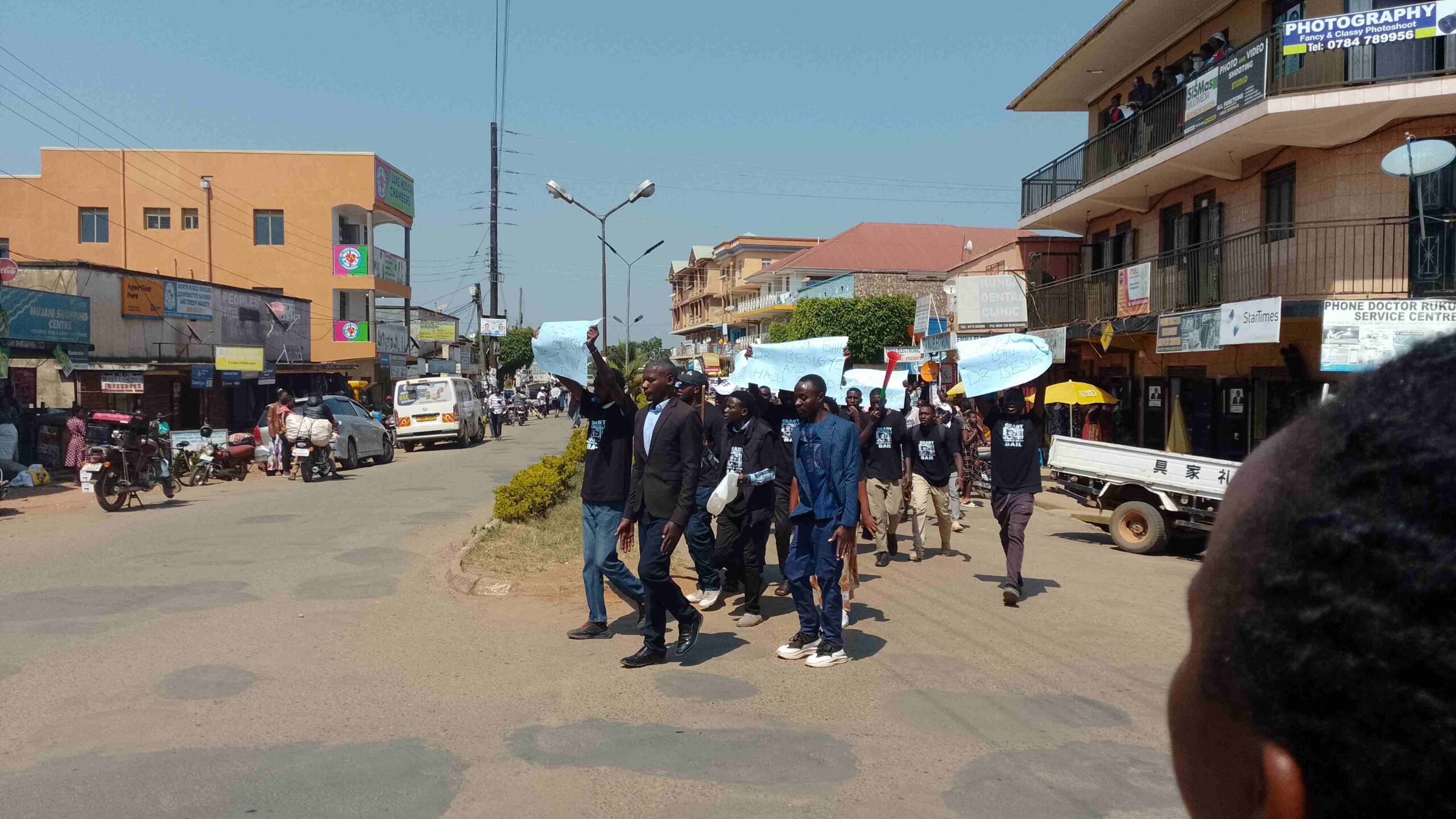 Protesters, led by Boaz Kamusiime, the Deputy Speaker of Rukungiri Municipality and PFF District Youth Chairperson marched through Republic Road and Karegyesa Road, chanting slogans and carrying placards that called for the immediate release of Dr. Besigye and other political detainees.