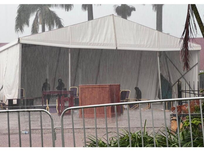 The disruption occurred shortly after court resumed from a 40-minute lunch break at the lakeside open-air venue in Ggaba. What began as a light drizzle quickly escalated into a heavy hailstorm accompanied by strong winds, tearing through temporary court tents and exposing judicial officers, lawyers, and court staff to harsh weather conditions.