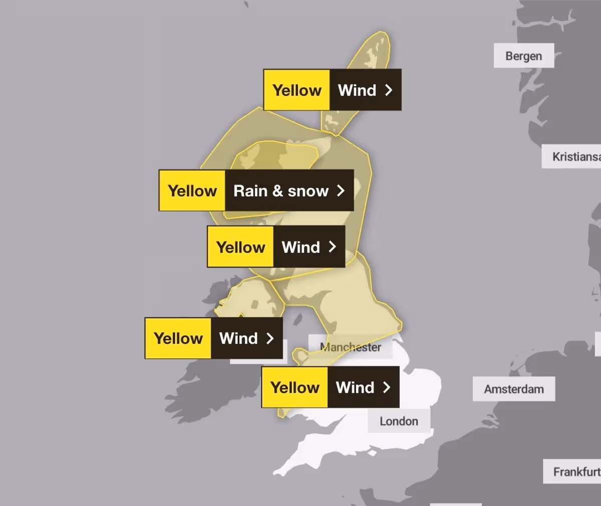 The Met Office has issued yellow alerts for wind across Scotland, Northern Ireland, and the north of England on Saturday and Sunday, with a warning also in place for the Orkney and Shetland Islands on Sunday.